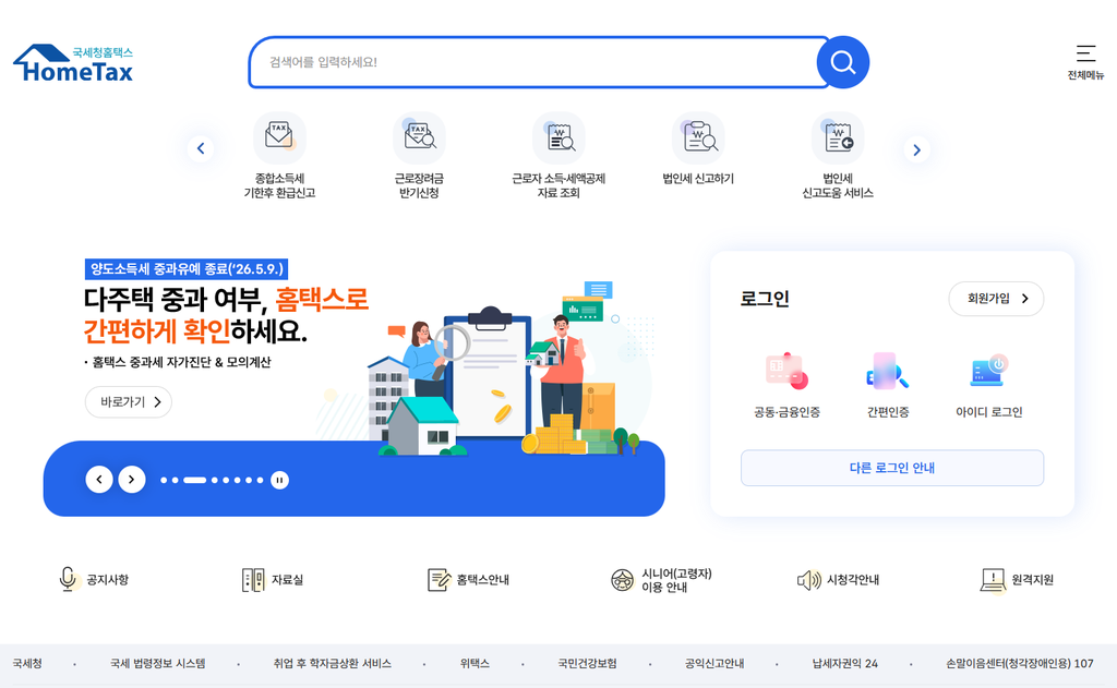 a. 국세청 홈택스 홈페이지에 접속 후 로그인합니다.