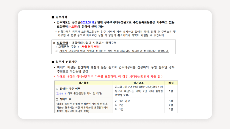 ์ด๋ฒ ๋ ๋ ์ ์ธ์ฃผํ์ ๋ฌด์ฃผํ์ธ๋๊ตฌ์ฑ์์ด๋ผ๋ฉด ๋๊ตฌ๋ ์ ์ฒญํ ์ ์์ด์. ๋จ, ์ ์ฒญ์ผ ๊ธฐ์ค์ผ๋ก ์๋๊ถ(์์ธยท๊ฒฝ๊ธฐยท์ธ์ฒ) ๊ฑฐ์ฃผ์์ฌ์ผ ํ๋ฉฐ, ์๋ ์กฐ๊ฑด๋ค์ ๊ผผ๊ผผํ ์ฒดํฌํ์ ์ผ ํด์.
