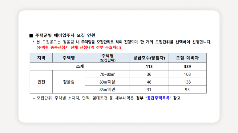 ์ฒญ์ฝ ์ ์ฒญ ์ ์ ๋ฐ๋์ ๊ณต๊ณ ๋ฌธ ๋ด์ฉ์ ์ ํํ ํ์ธํ๊ณ , ์๋ ์ฌํญ๋ค์ ๊ผญ ์ฒดํฌํด์ฃผ์ธ์. ์ค์ํ๋ฉด ๋ฌดํจ ์ฒ๋ฆฌ๋๊ฑฐ๋ ๋น์ฒจ์ด ์ทจ์๋ ์ ์์ด์.