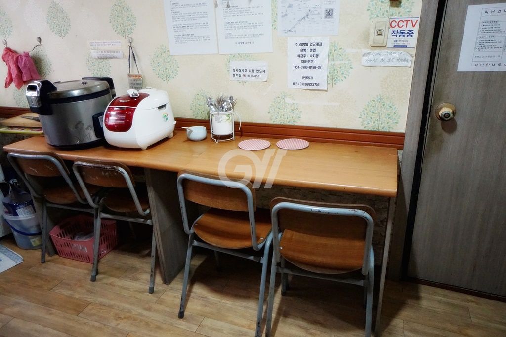 공용냉장고, 인덕션, 전자레인지, 전기밥솥, 정수기, 조리도구, 식탁
