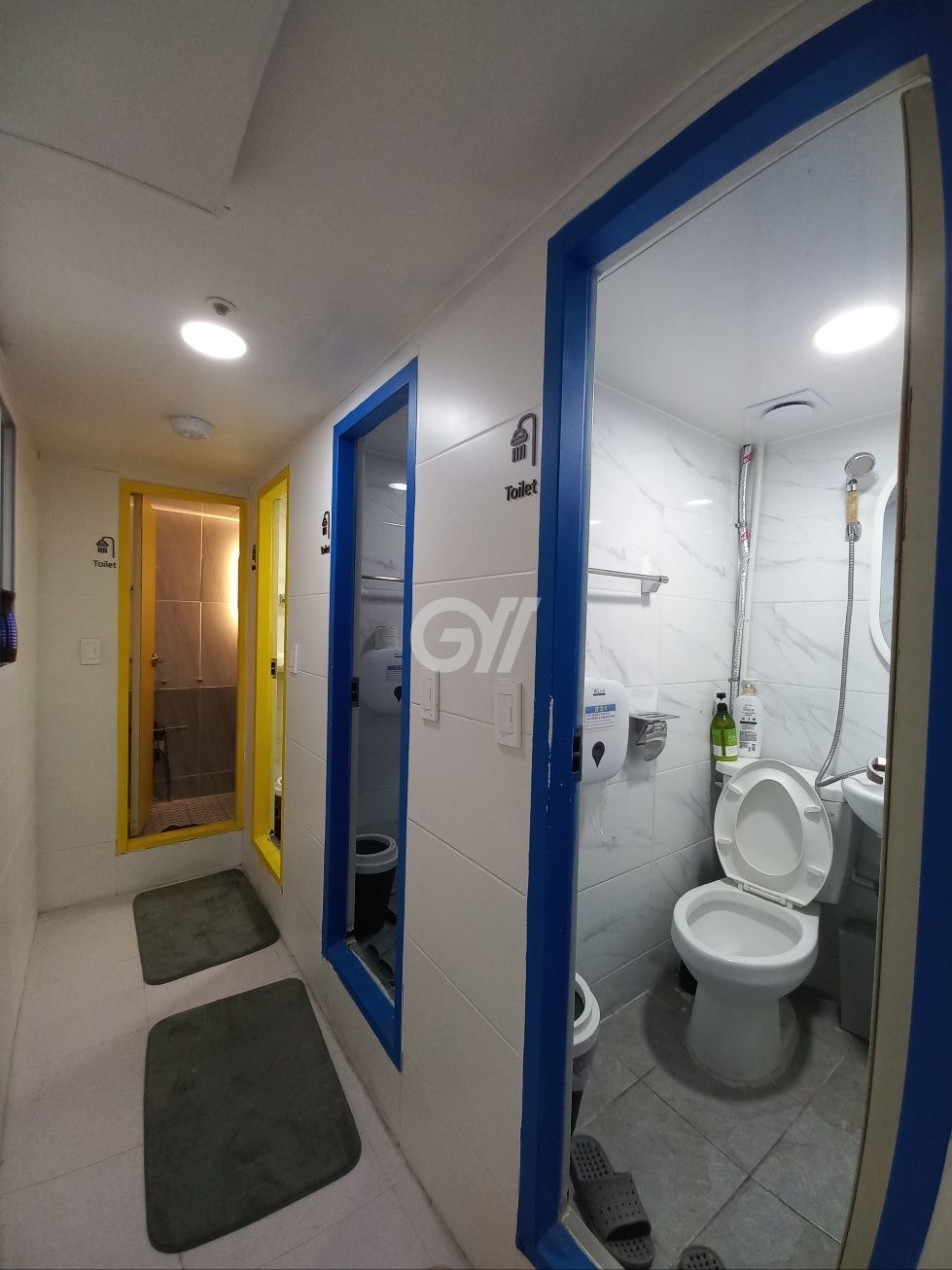 각 방에 샤워실만 있는 방 구조입니다. 화장실은 공용화장실을 이용해야 합니다.