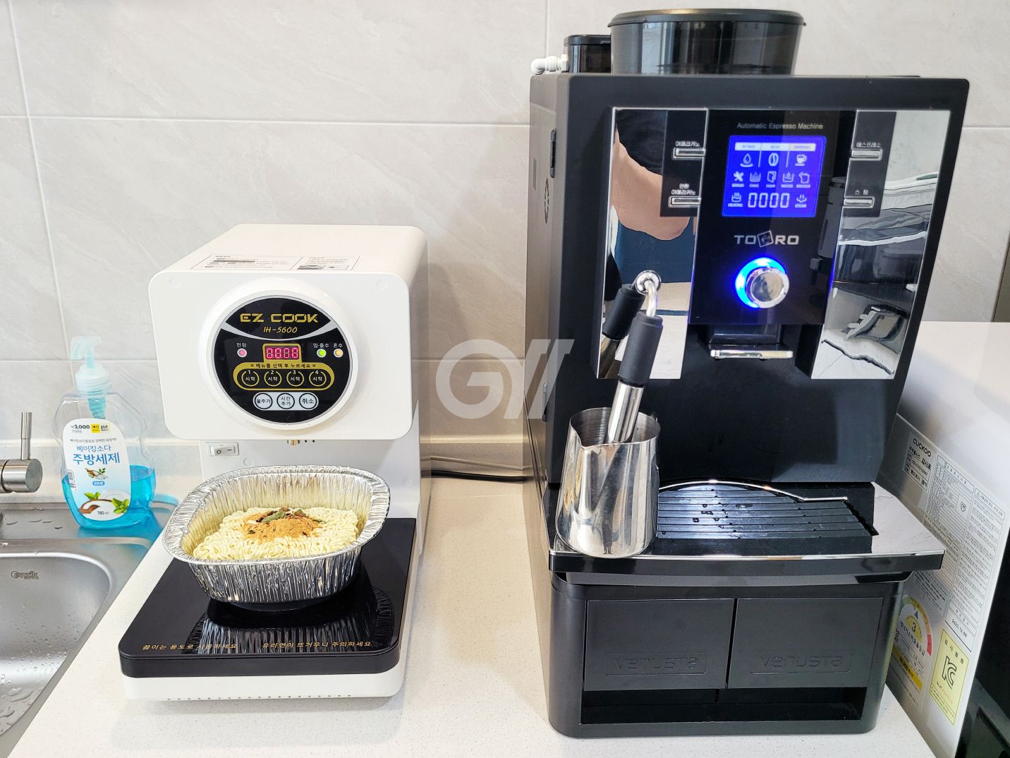 - 한강라면기계에 라면 끓어 먹고, 커피머신기, 제빙기가 있어 언제든지 아이스아메리카노 마실 수 있습니다.
