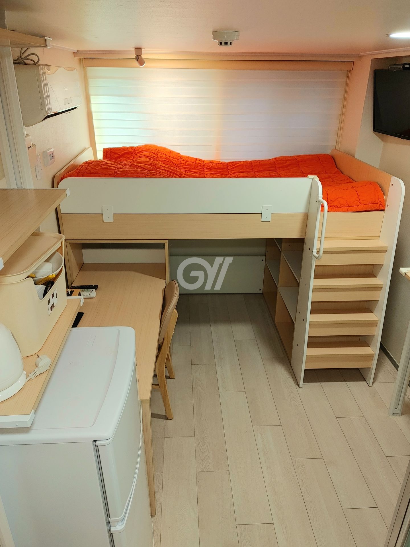 1.벙커형 2층 침대라서 아래층은 넓은 수납공간으로 이용가능합니다.