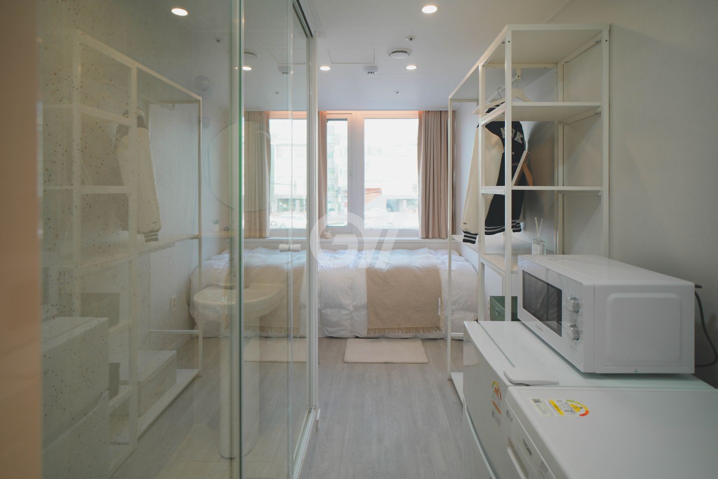 /전자레인지/ 투도어냉장고 (냉동고 포함)/오픈행거, 오픈선반/넓은 책상/ 디지털도어락/ 방마다 개별 Wifi 와이파이)