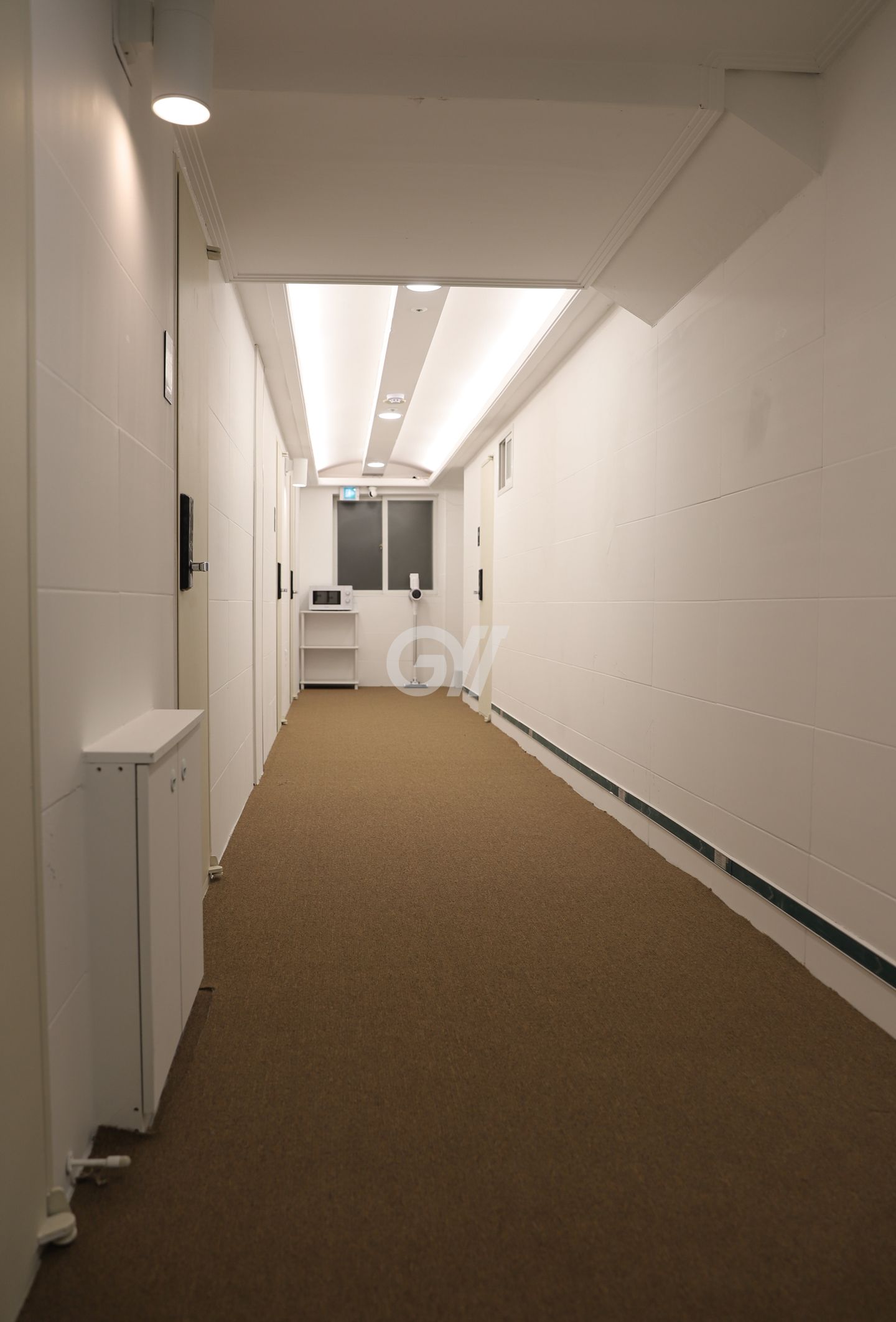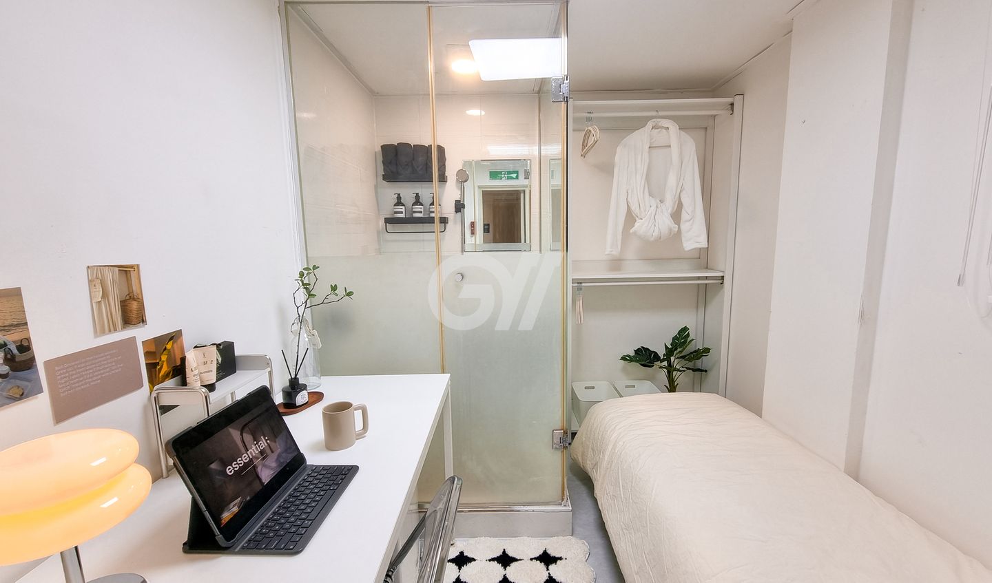 복도 폭이 1.5M로 널~찍해요. 게다가 감성이 가득한 호텔 카페트를 사용해 보기도 좋고 복도를 걸어 다닐 때 카페트의 흠음 기능 덕에 또각또각 발 소리가 들리지 않아 방안에서 더 조용히 지낼 수 있어요!