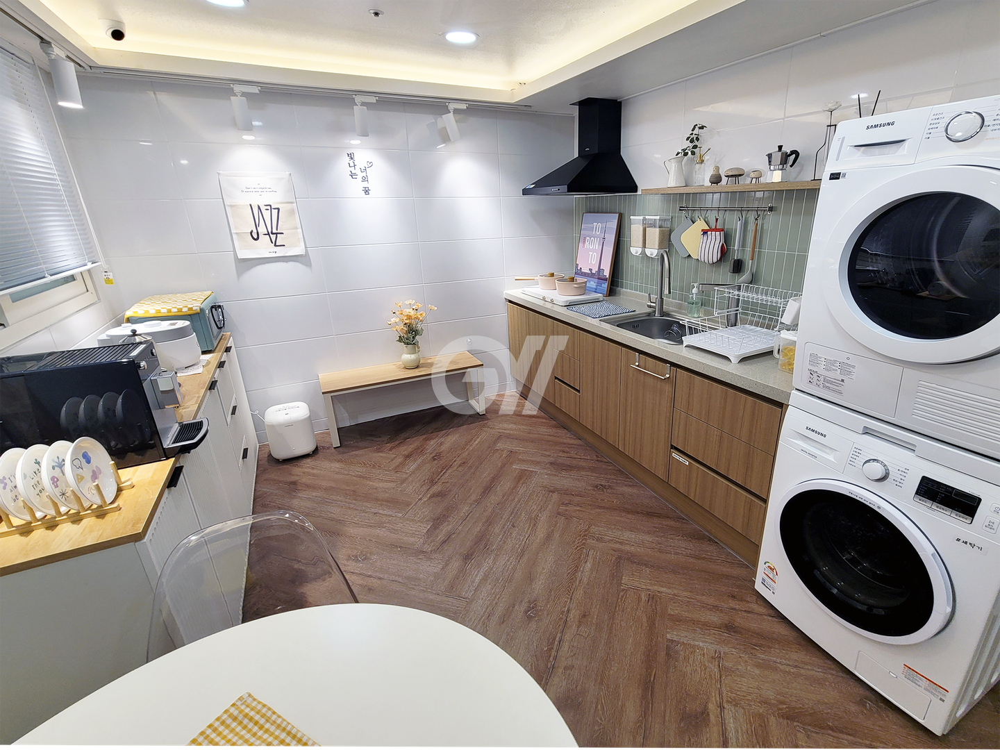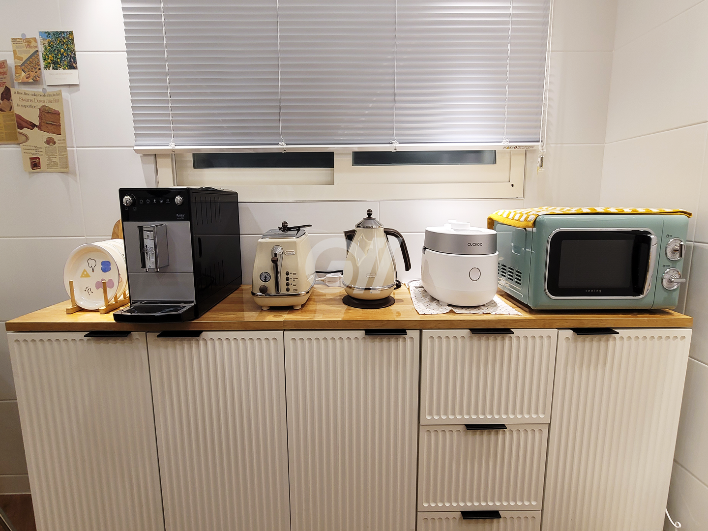 인덕션, 전자레인지, 전기포트, 전기밥솥, 토스트기, 커피머신, 정수기, 조리도구, 식탁