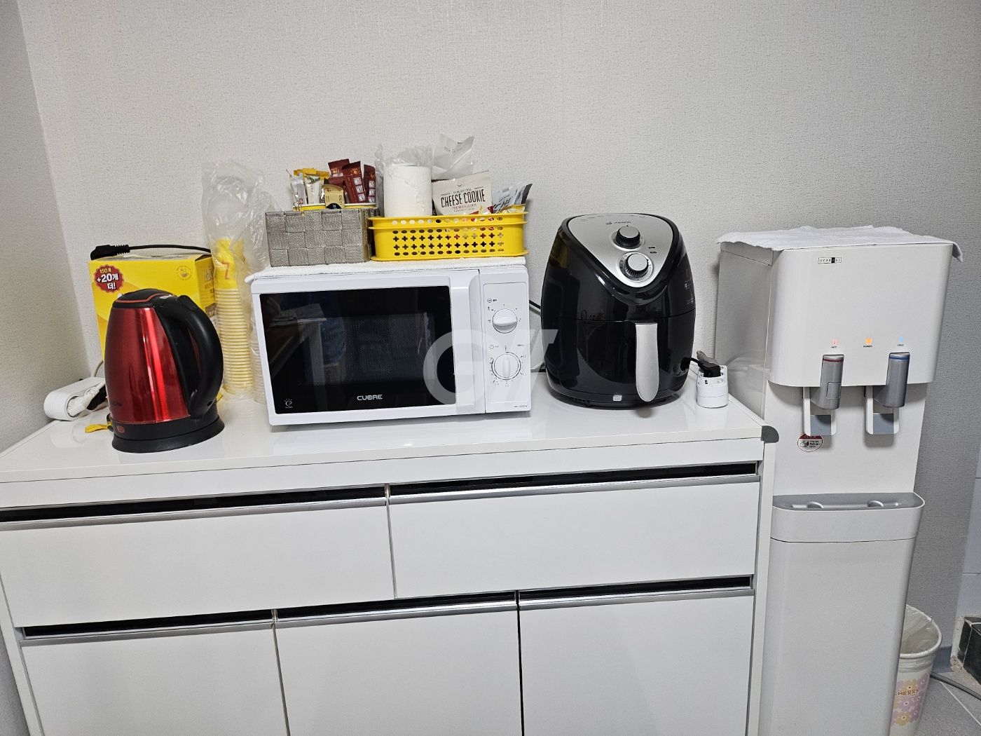 공용냉장고, 인덕션, 전자레인지, 전기포트, 전기밥솥, 정수기, 조리도구, 식탁
