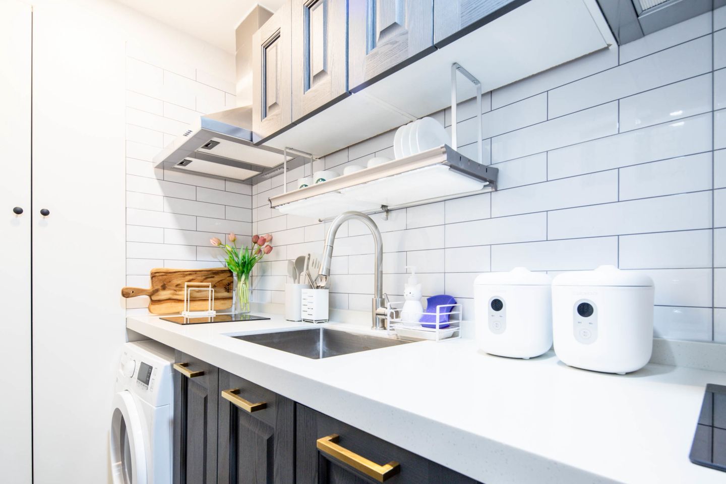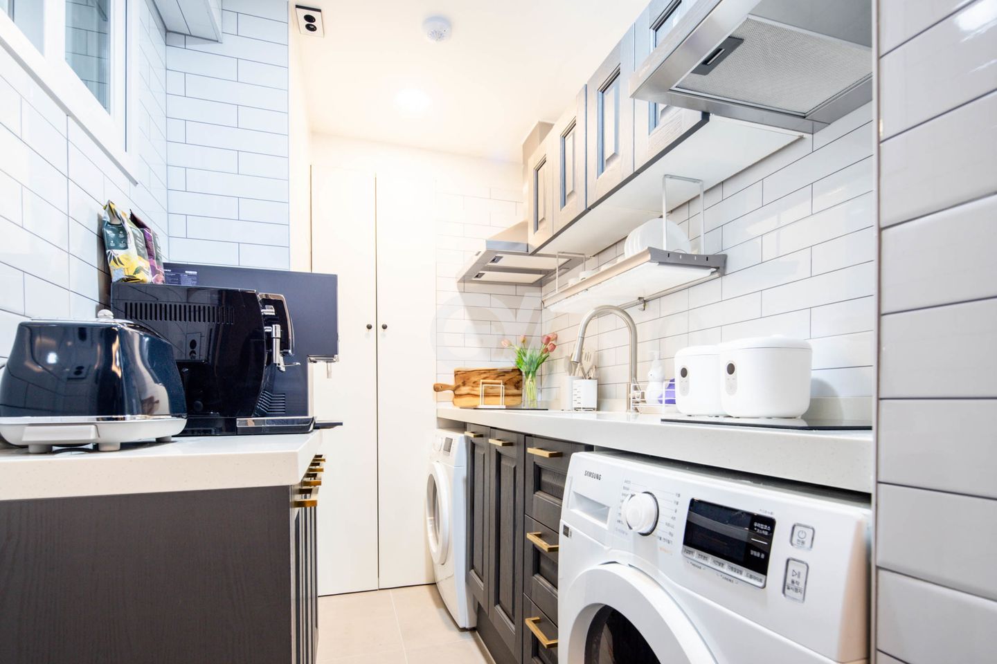 공용 주방 비치 품목: ( 건조기 / 인덕션 / 커피머신 / 얼음정수기 / 전기밥솥 / 토스터 / 각종 조리 기구 )