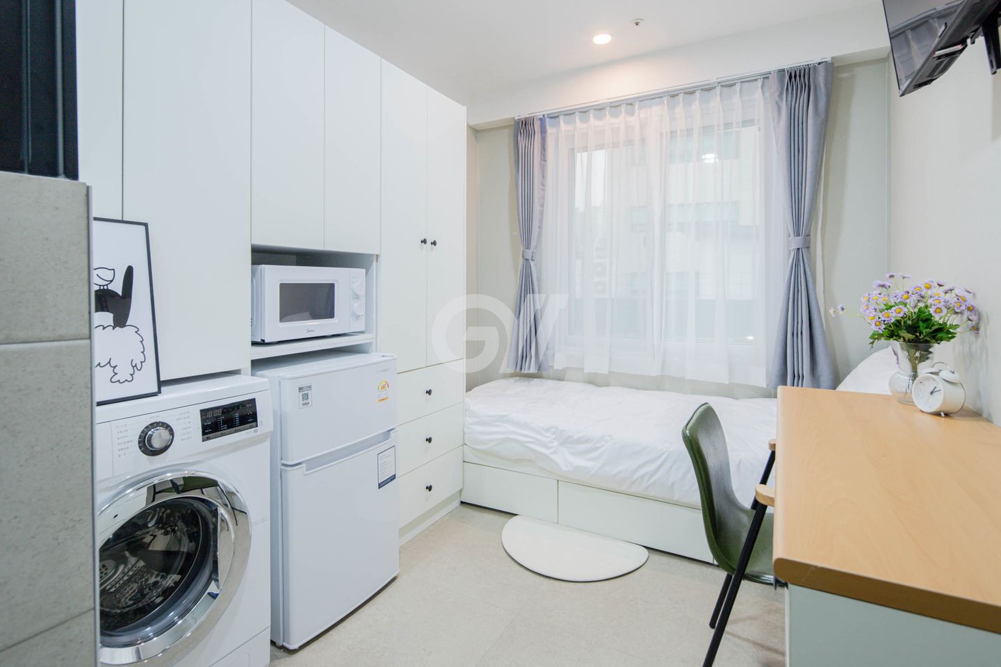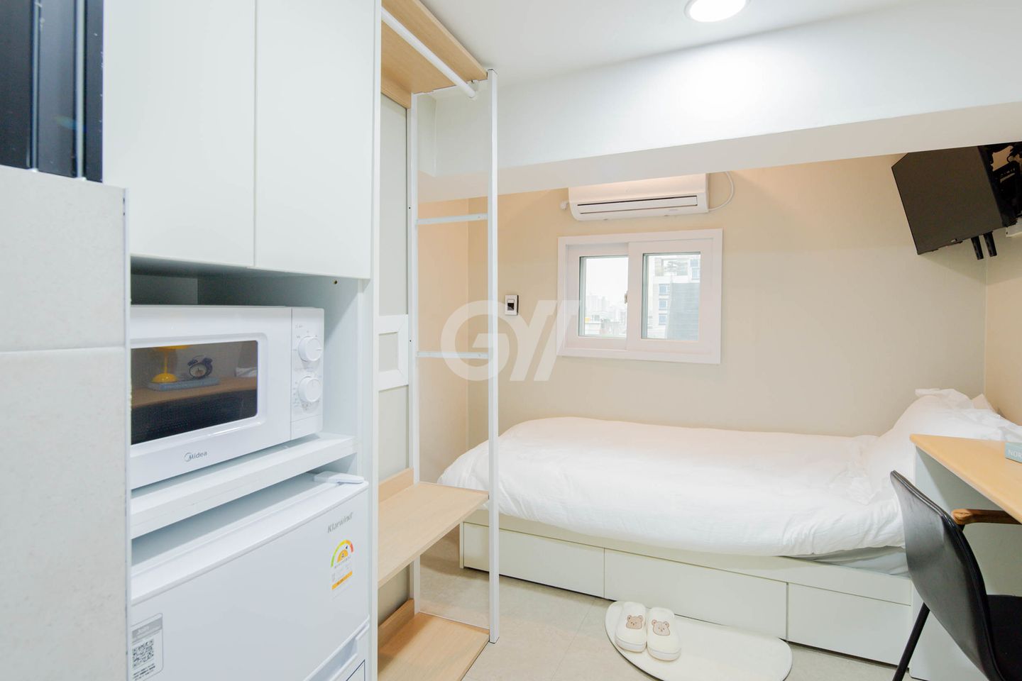 객실 제공: ( 개인 화장실 / 냉장고 / 에어컨 /세탁기 /전자렌지 / WiFi / IPTV / 옷장 / 책상 / 수납장 / 건조대 )