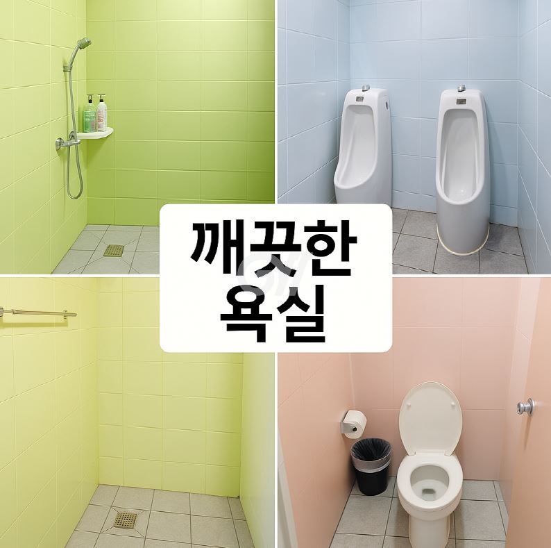 공용화장실(4개), 좌변기(4개), 샤워기(4개)