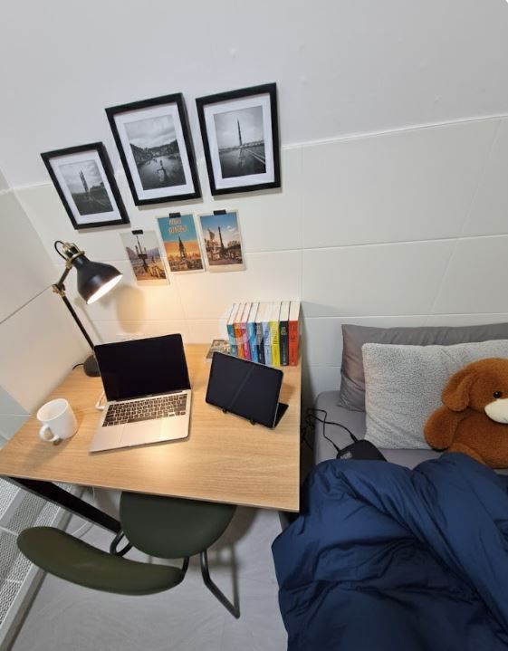 각 방에 샤워실과 화장실이 모두 없는 방 구조입니다. 공용샤워실과 공용화장실을 이용해야 합니다.