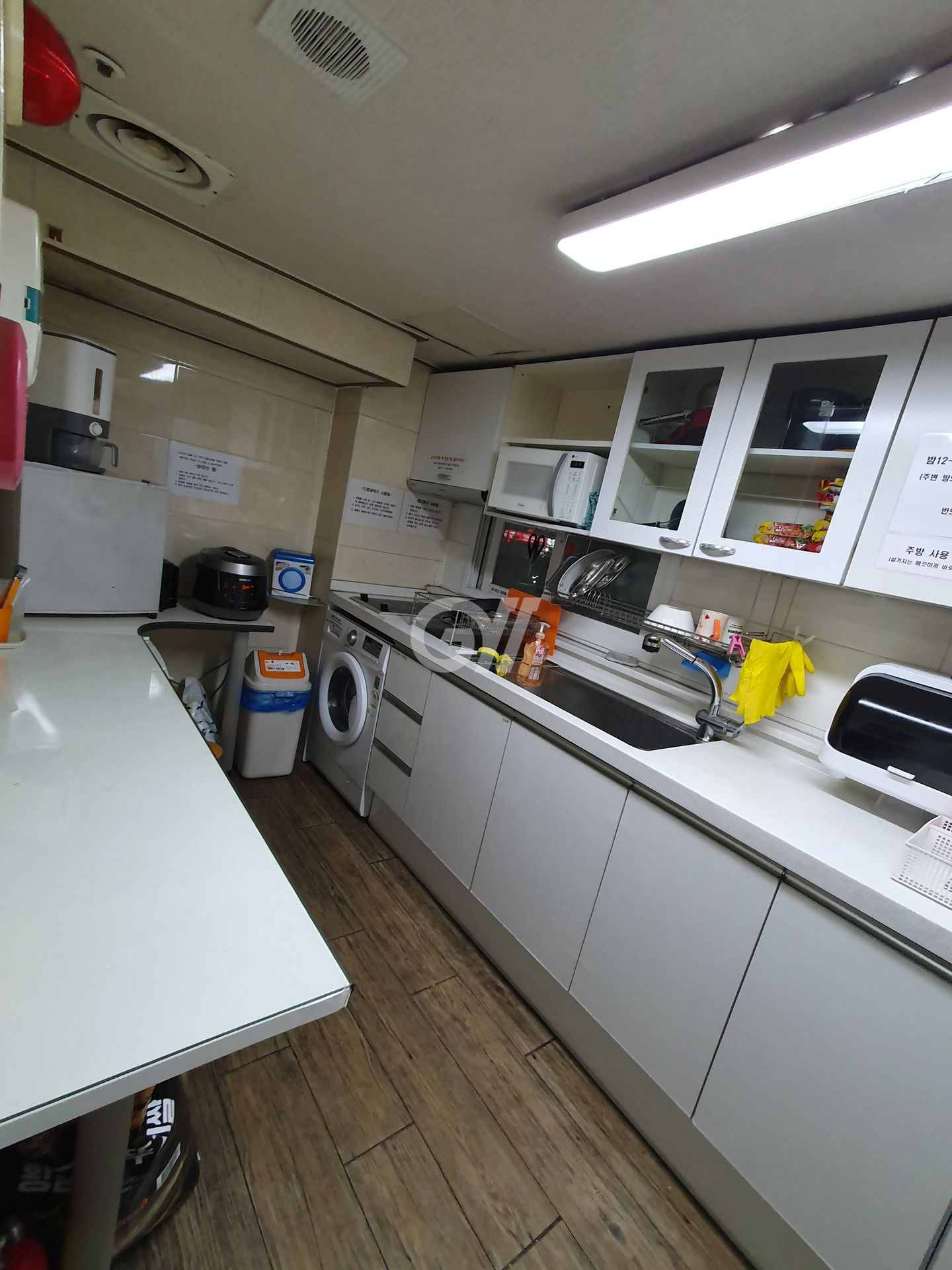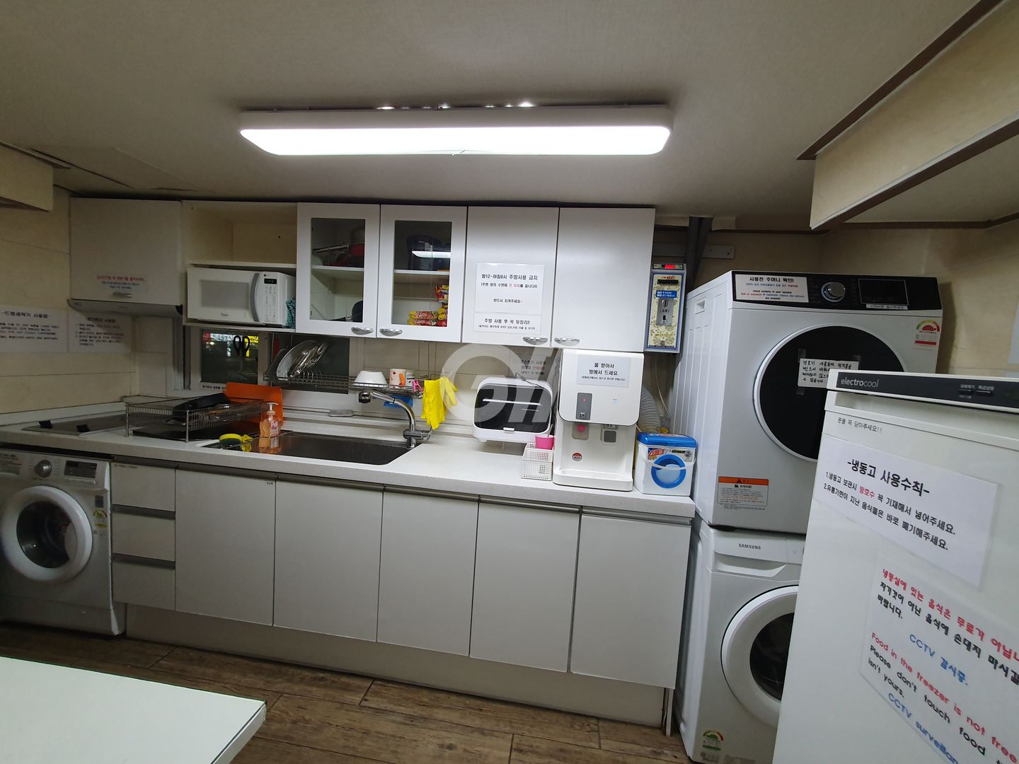 공용냉장고, 인덕션, 전자레인지, 전기밥솥, 토스트기, 정수기, 조리도구, 식탁
