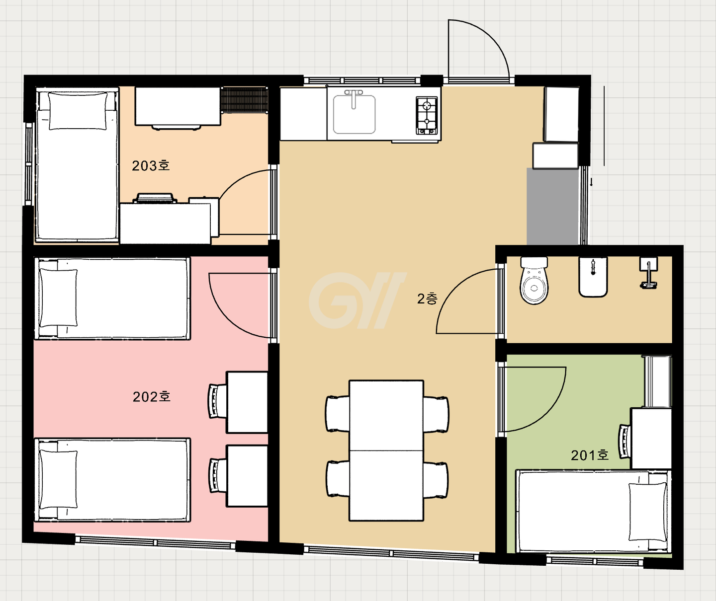 2층,3층은 쉐어하우스 입니다.