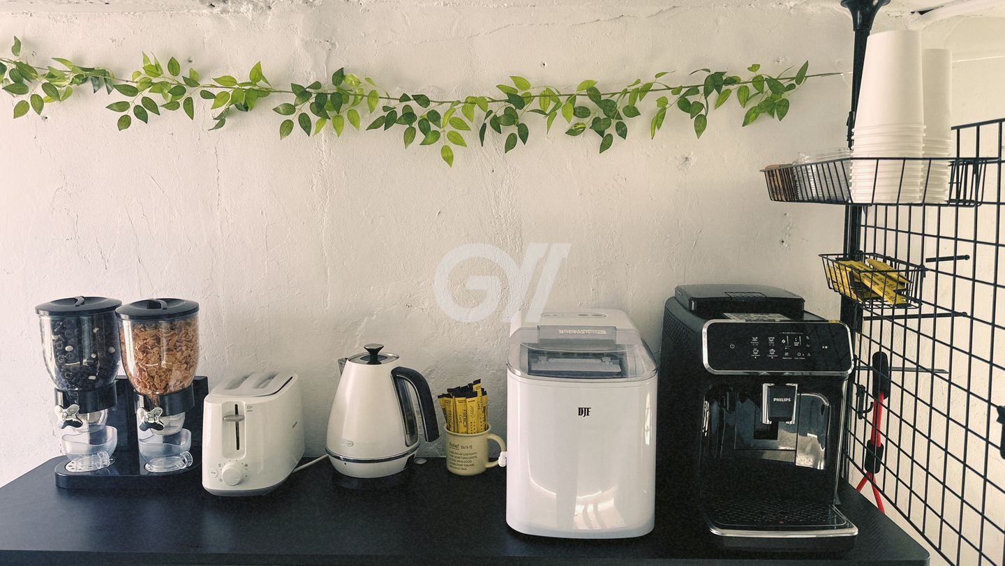 공용냉장고, 인덕션, 전자레인지, 전기포트, 전기밥솥, 토스트기, 커피머신, 정수기, 조리도구, 식탁