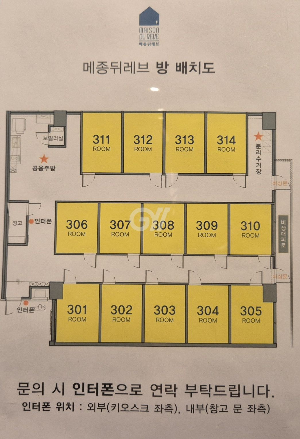 다양한 방 종류가 혼합된 고시원입니다.