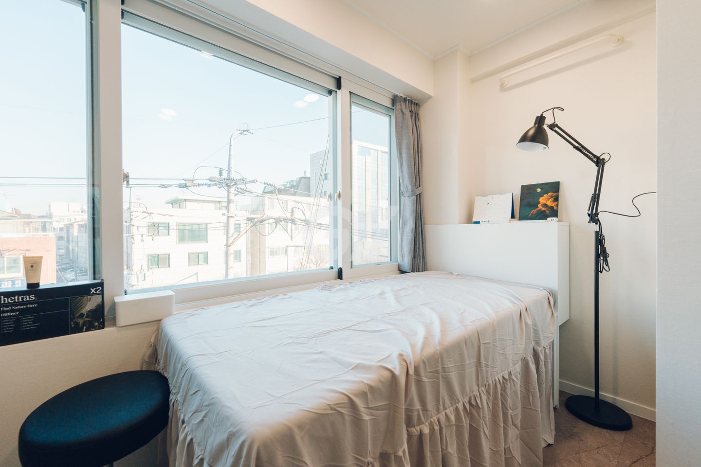 먼슬리브는 깔끔하고 현대적인 인테리어가 돋보이는 공간으로, 커다란 창문과 넉넉한 수납공간이 있어 1인 거주에 딱 맞는 공간이에요.