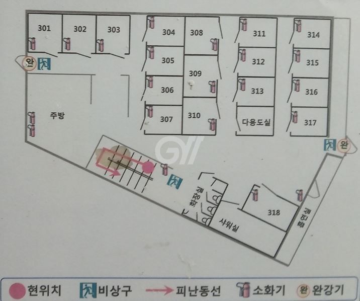 다양한 방 종류가 혼합된 고시원입니다.