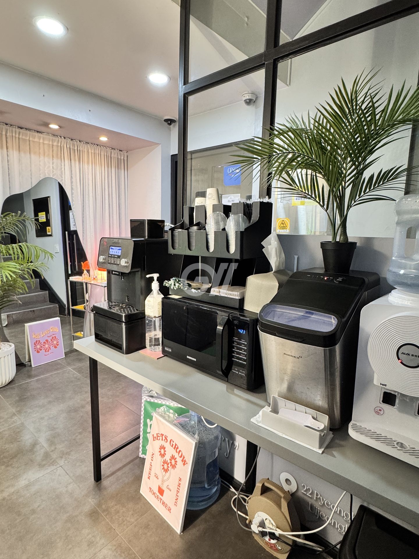 인덕션, 전자레인지, 전기포트, 커피머신, 정수기, 조리도구, 식탁