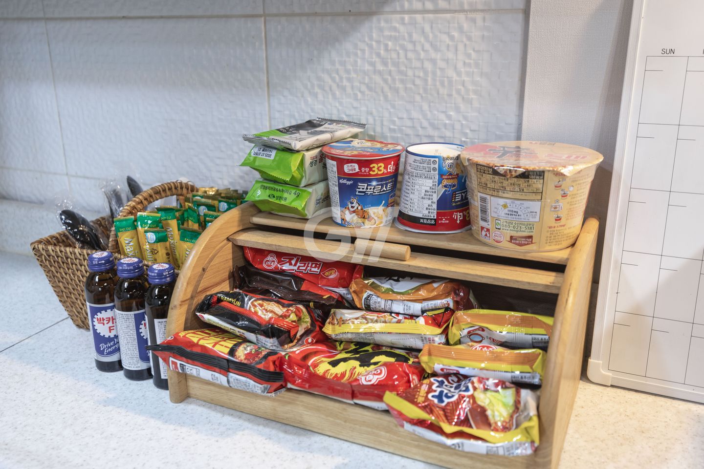 : 세탁실과 주방은 공용으로 사용합니다.