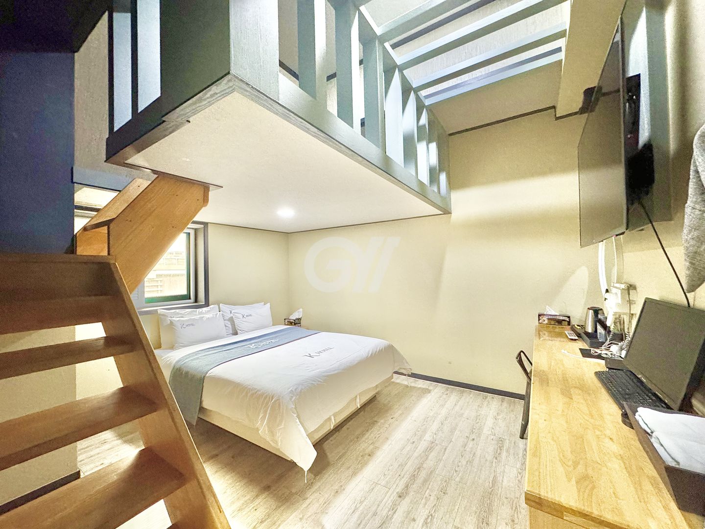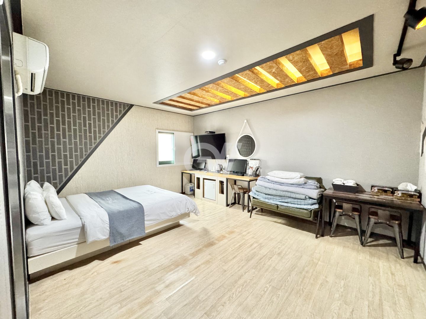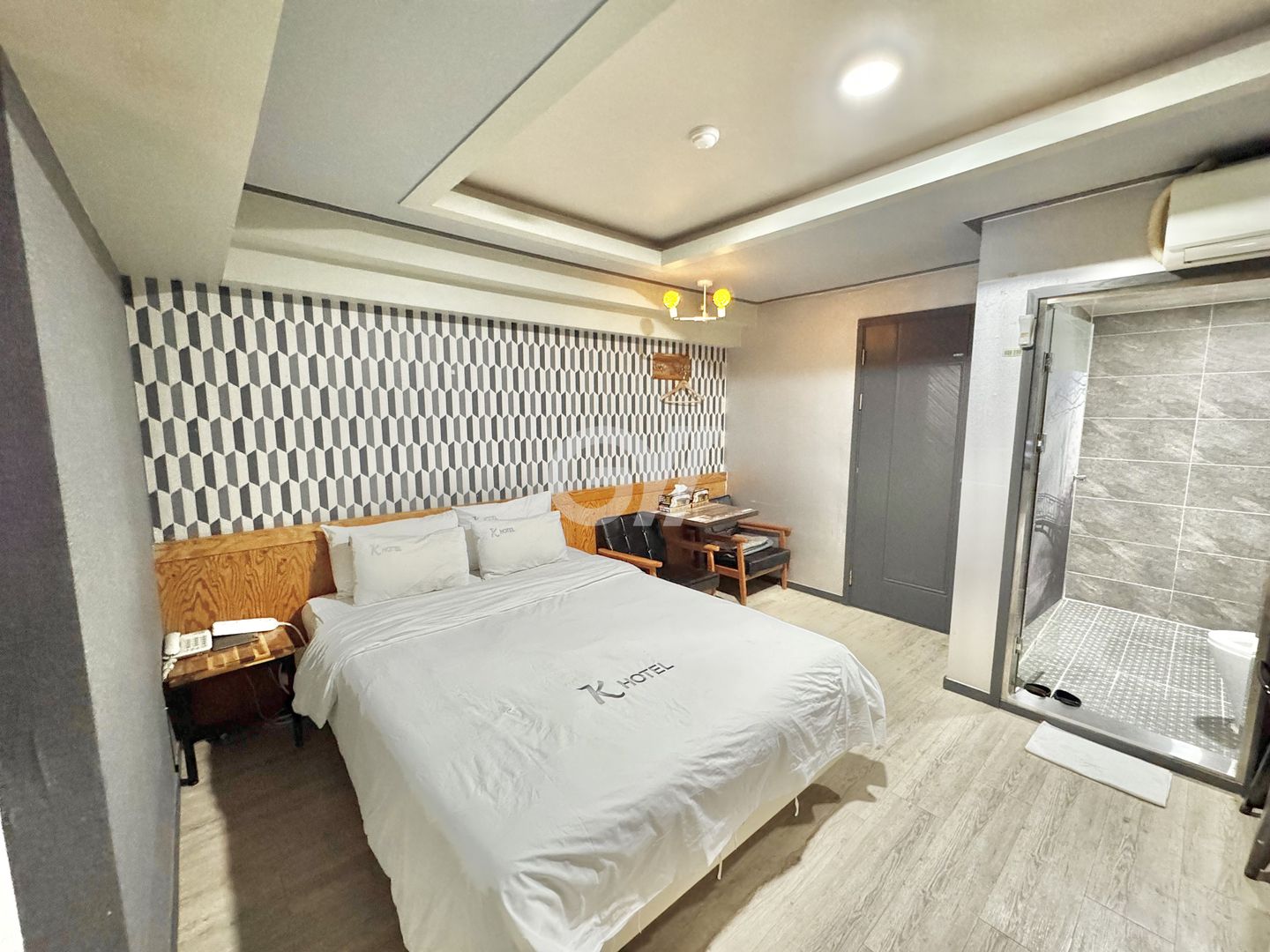 [시설 ]모든 객실은 일반 방크기의 개별화장실, 퀸사이즈(Q) 침대, 개별에어컨, 55인치 TV(모니터 겸용), 초고속인터넷,개별개인냉장고,개별카드도어락이 설치되어 있습니다.