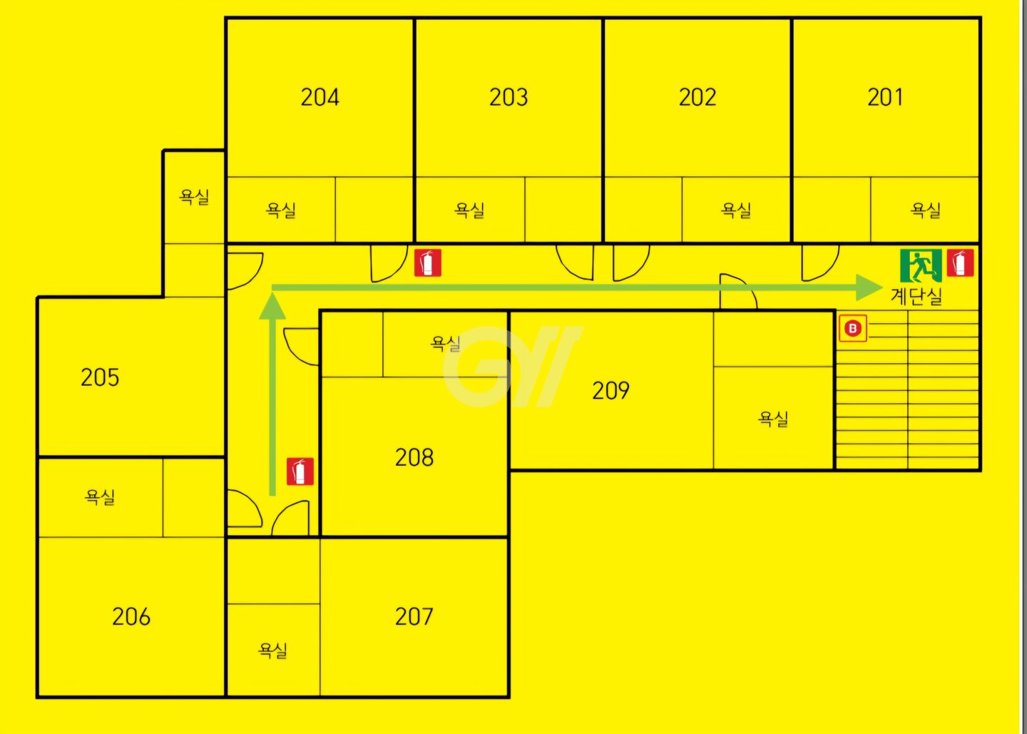 각 방에 샤워실과 화장실이 모두 없는 방 구조입니다. 공용샤워실과 공용화장실을 이용해야 합니다.