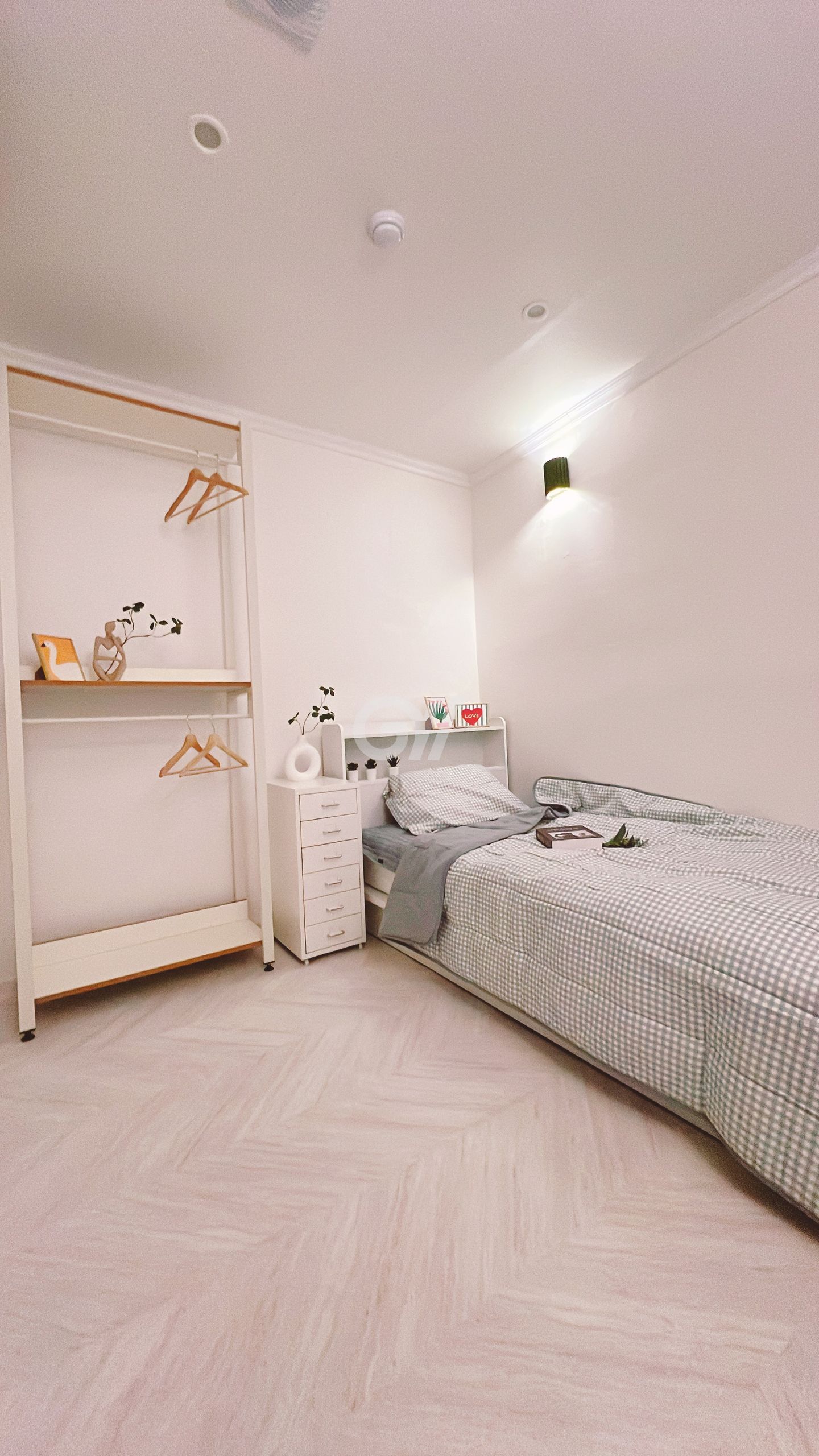4. 아늑한 디자인과 분위기: 따뜻한 무드등과 이케아 스타일의 심플한 인테리어.