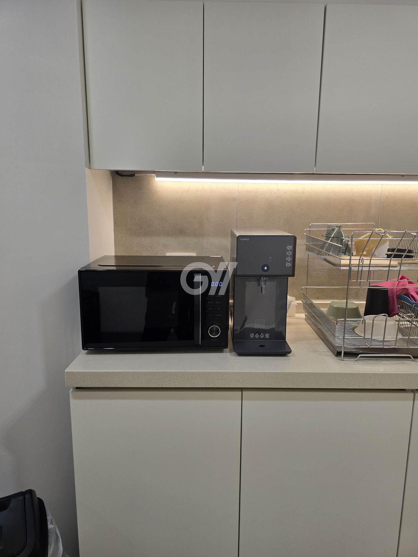 전자레인지, 전기포트, 정수기, 식탁