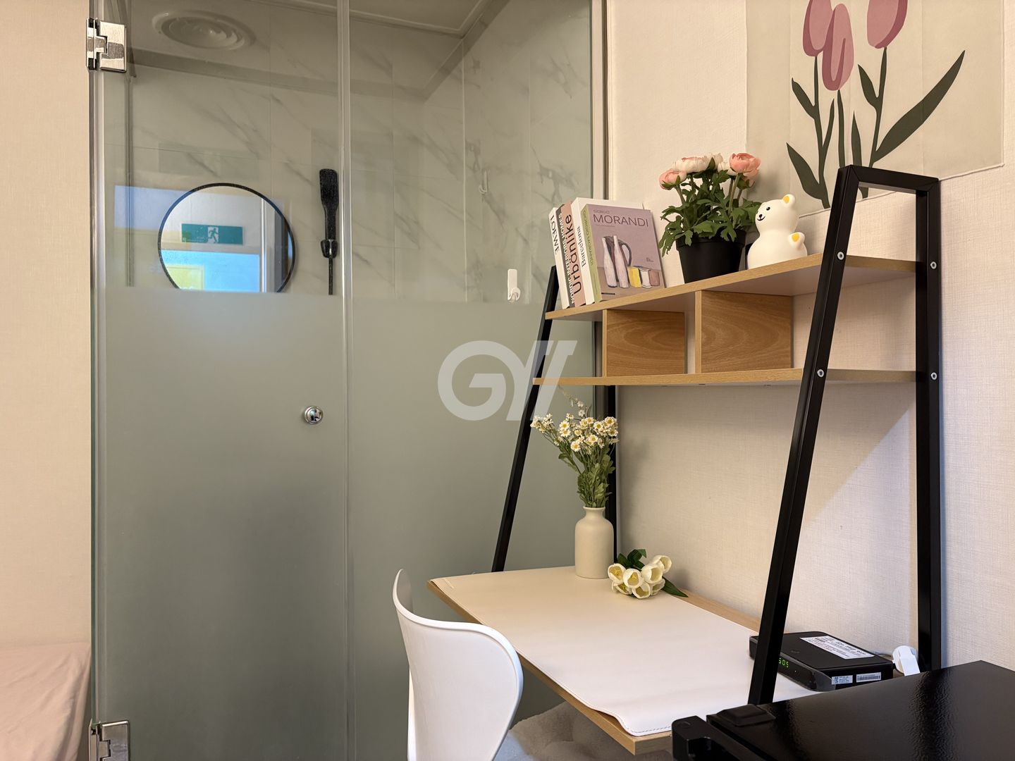 각 방에 샤워실과 화장실이 모두 없는 방 구조입니다. 공용샤워실과 공용화장실을 이용해야 합니다.