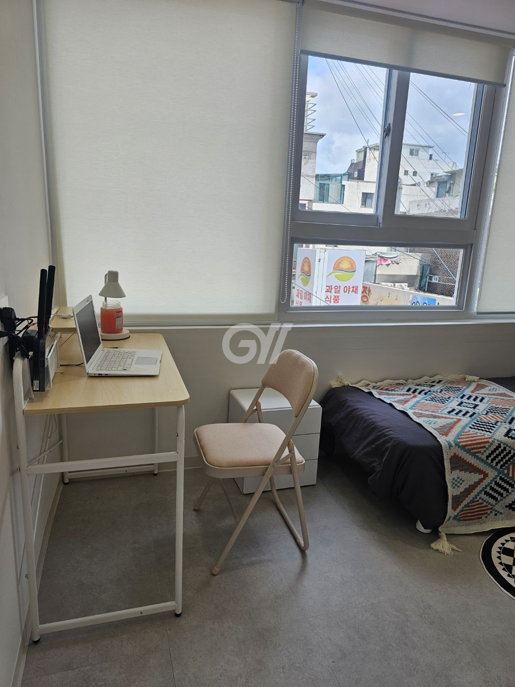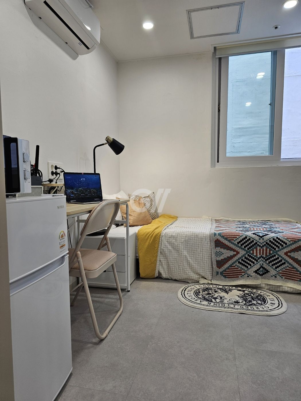 -모든 룸 내부에는 화장실, 2도어 냉장고, LG드럼세탁기, 건조기,전자레인지, 개별에어컨, 책상, 의자, 행거, 침대, 침대협탁, 개별WIFI가 구비되어있습니다.