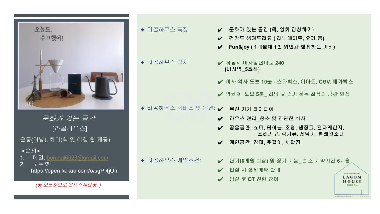 (주)네오플랫은 고방 서비스 제공을 위해서 아래와 같이 개인정보를 수집합니다. 정보주체는 본 개인 정보의 수집 및 이용에 관한 동의를 거부하실 권리가 있으나, 서비스 제공에 필요한 최소한의 개인정보이므로 동의를 해 주셔야 서비스를 이용하실 수 있습니다.