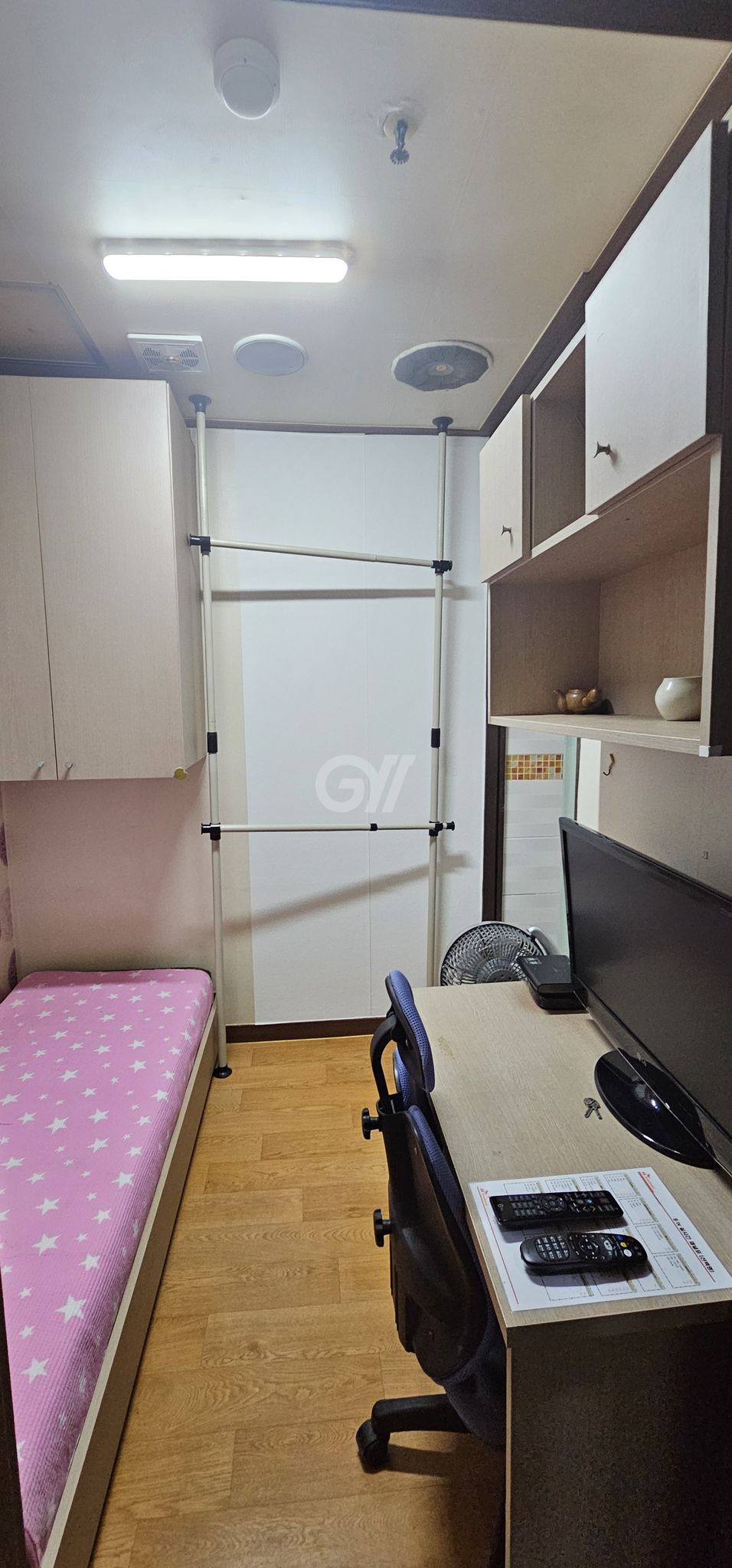 ■아이원리빙텔의 방은 세련된 인테리어와 호텔급 풀옵션을 갖추고 있습니다. 각 방에는 전용 샤워실과 화장실이 설치되어 있으며, 침대, 긴 옷장, 책장, 책상, 행거, 개인 냉장고, 컴퓨터 모니터 겸용 TV가 제공됩니다1. 방 크기는 가격에 비해 넓게 설계되어 있으며, 다양한 크기의 1인실과 2인실을 보유하고 있습니다. 각 방에는 초고속 인터넷과 Wi-Fi가 제공되며, 에어컨 및 난방 시설이 완비되어 있습니다.
