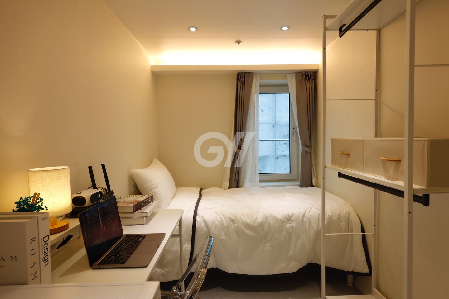 약 3평 크기의 방으로, 책상과 옷장, 생활 소품을 배치하고도 공간이 충분해 캐리어나 짐을 보관하기에도 전혀 불편함이 없습니다.