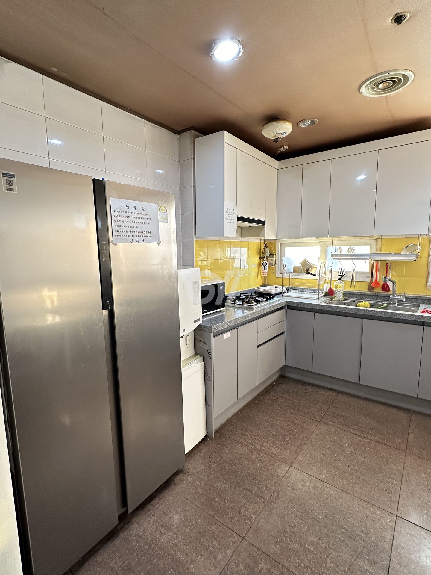 공용냉장고, 가스레인지, 전자레인지, 전기밥솥, 정수기, 조리도구, 식탁