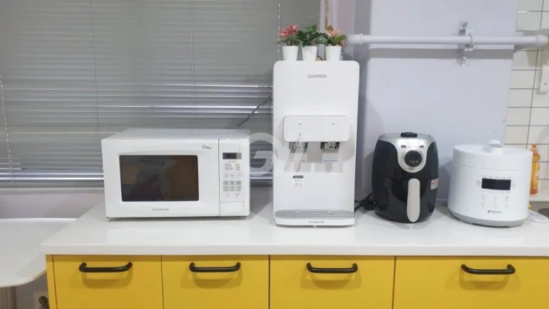 가스레인지, 전자레인지, 전기포트, 전기밥솥, 정수기, 식탁