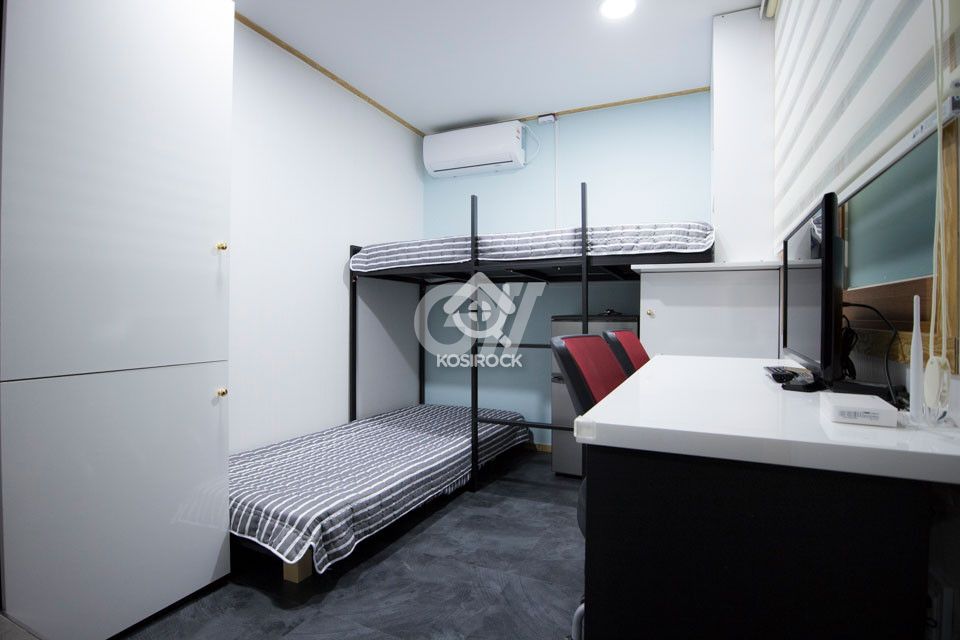 - LCD TV겸 모니터, 침대, 냉장고(투도어), 수납장, 옷장, 책상과 의자