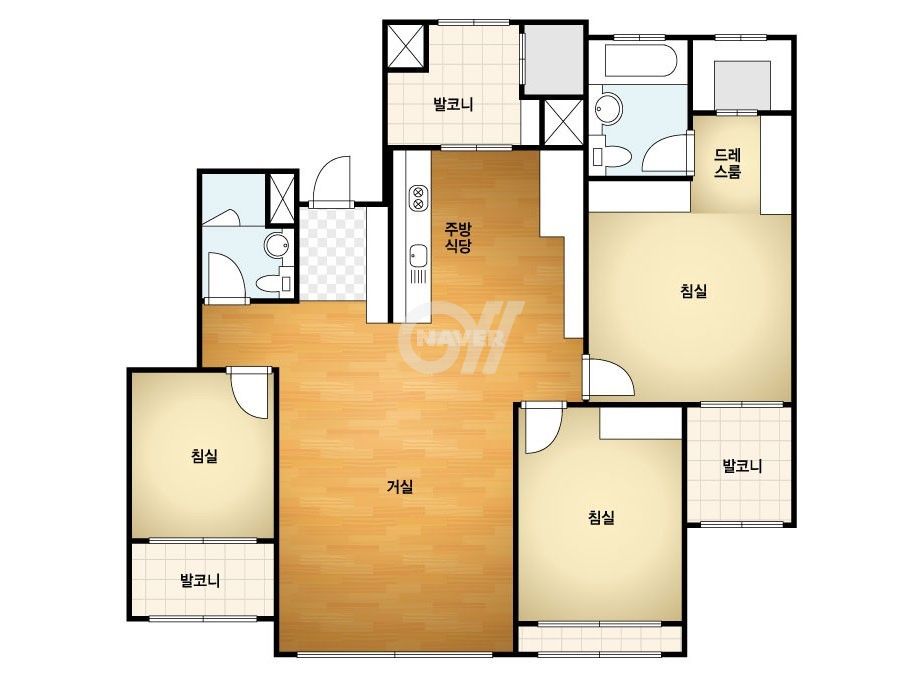 각 방에 샤워실과 화장실이 모두 있는 방 구조입니다.