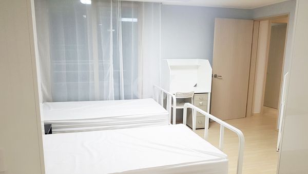 각 방에 샤워실과 화장실이 모두 없는 방 구조입니다. 공용샤워실과 공용화장실을 이용해야 합니다.