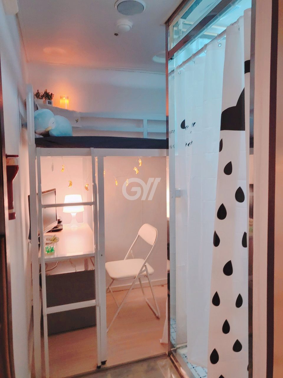 1인 1실로 거주 가능하며, 전체 샤워실과 화장실이 있는 원룸형 구조입니다. 벽은 벽돌로 되어있어 조금 더 조용한 생활이 가능합니다.