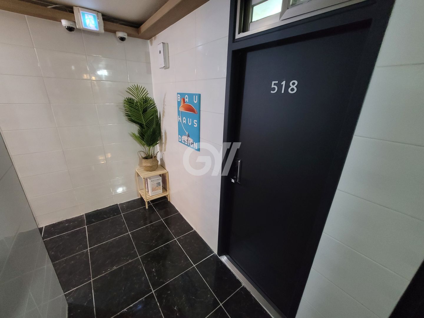 - 복도의 흰색 벽과 바닥, 도어 검은색이 대비되는 White-Black 스타일로 꾸몄습니다.