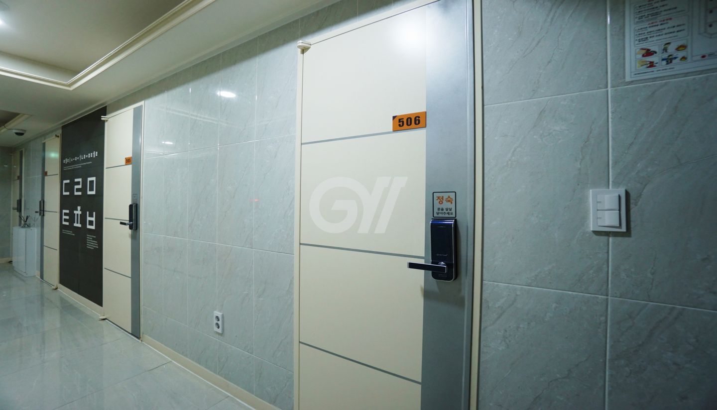 각 방에 샤워실과 화장실이 모두 없는 방 구조입니다. 공용샤워실과 공용화장실을 이용해야 합니다.