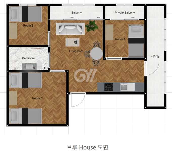 3. 넓은 거실에 넓은 베란다, 아파트 구조의 하우스