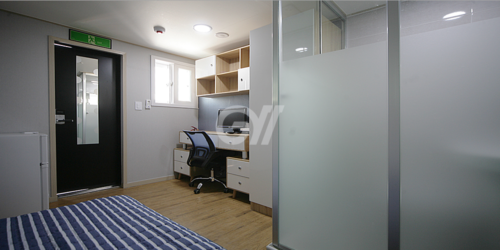 각 방에 샤워실과 화장실이 모두 없는 방 구조입니다. 공용샤워실과 공용화장실을 이용해야 합니다.
