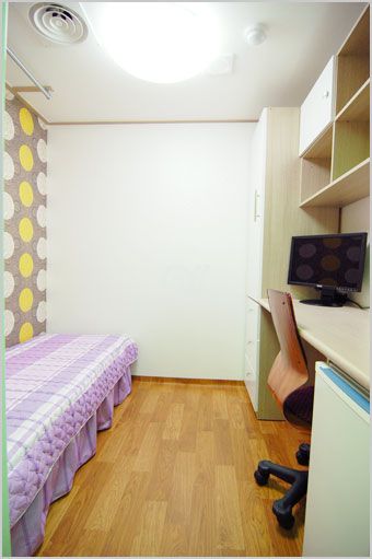 각 방에 샤워실과 화장실이 모두 없는 방 구조입니다. 공용샤워실과 공용화장실을 이용해야 합니다.