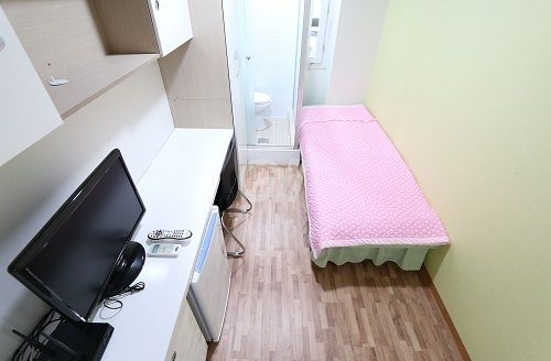 각 방에 샤워실과 화장실이 모두 없는 방 구조입니다. 공용샤워실과 공용화장실을 이용해야 합니다.
