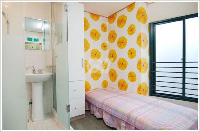 각 방에 샤워실과 화장실이 모두 없는 방 구조입니다. 공용샤워실과 공용화장실을 이용해야 합니다.