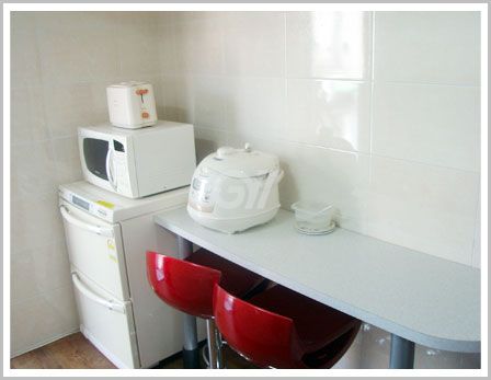 공용냉장고, 인덕션, 전자레인지, 전기밥솥, 토스트기, 정수기, 조리도구, 식탁
