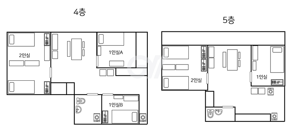 2인실 1개와 1인실 1개 총 3명이 거주하는 곳으로