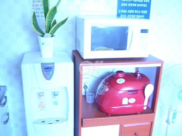 공용냉장고, 가스레인지, 전자레인지, 전기밥솥, 정수기, 조리도구, 식탁