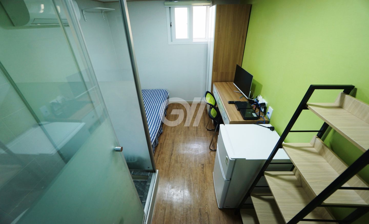 각 방에 샤워실과 화장실이 모두 없는 방 구조입니다. 공용샤워실과 공용화장실을 이용해야 합니다.