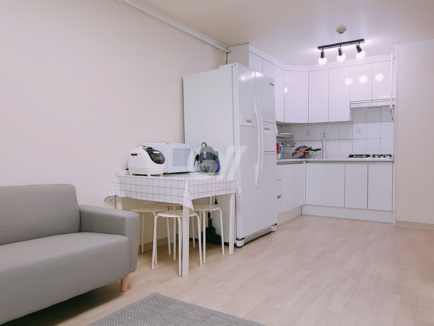 공용냉장고, 가스레인지, 전자레인지, 전기밥솥, 정수기, 조리도구, 식탁